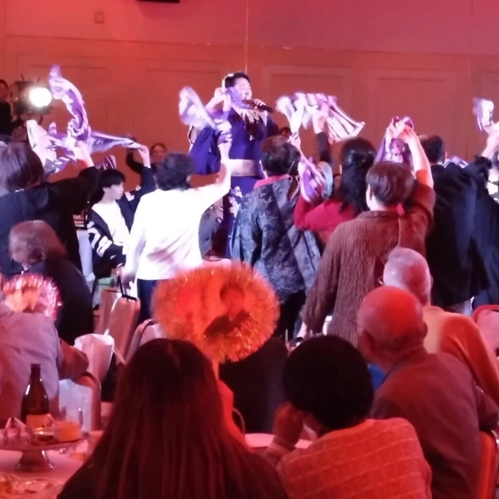 今年の目玉は新曲「恋の月光仮面」の披露です。作詞作曲がなんと高鍋町の黒木敏之町長。若い頃はバンド演奏をされていた黒木町長もノリノリ。