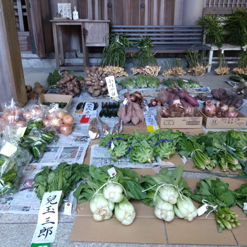 分け合うと言っても、みんなで競り合うのですけど、これがとっても面白くて、ゆず胡椒を作っておられる日高さんの競り人の腕が見ものです。私も図に乗って、新鮮な野菜をたくさん買いすぎましたわ〜。