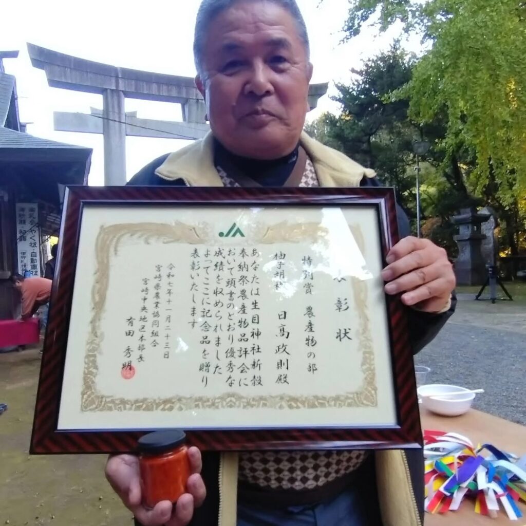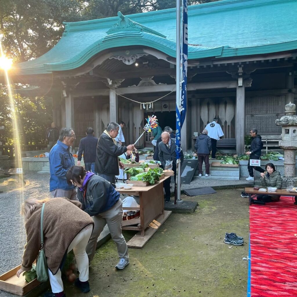 生目地区で収穫された農産物を生目神社にお供えし、神事のあと皆さんで農産物を分け合う行事です。